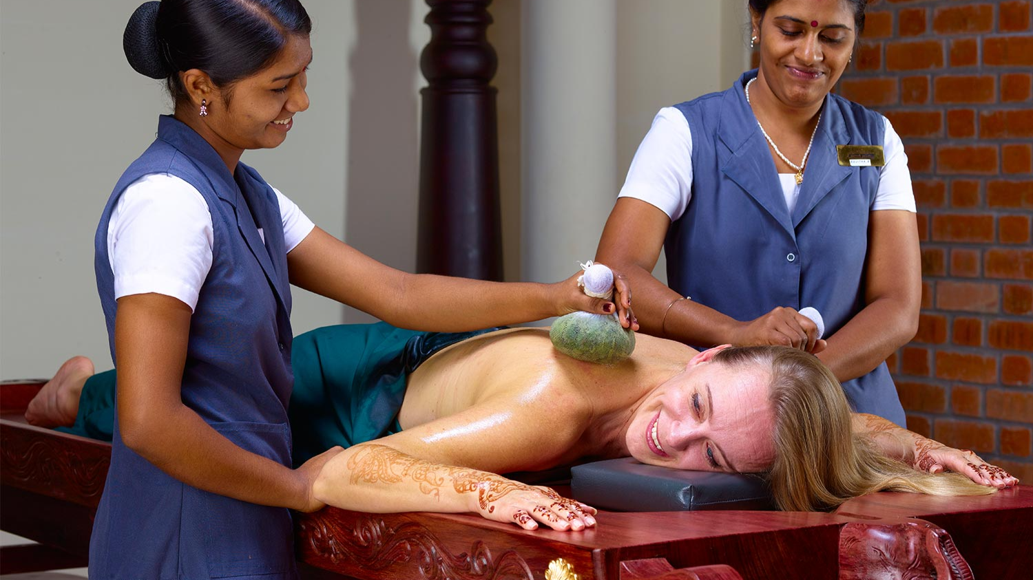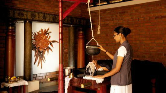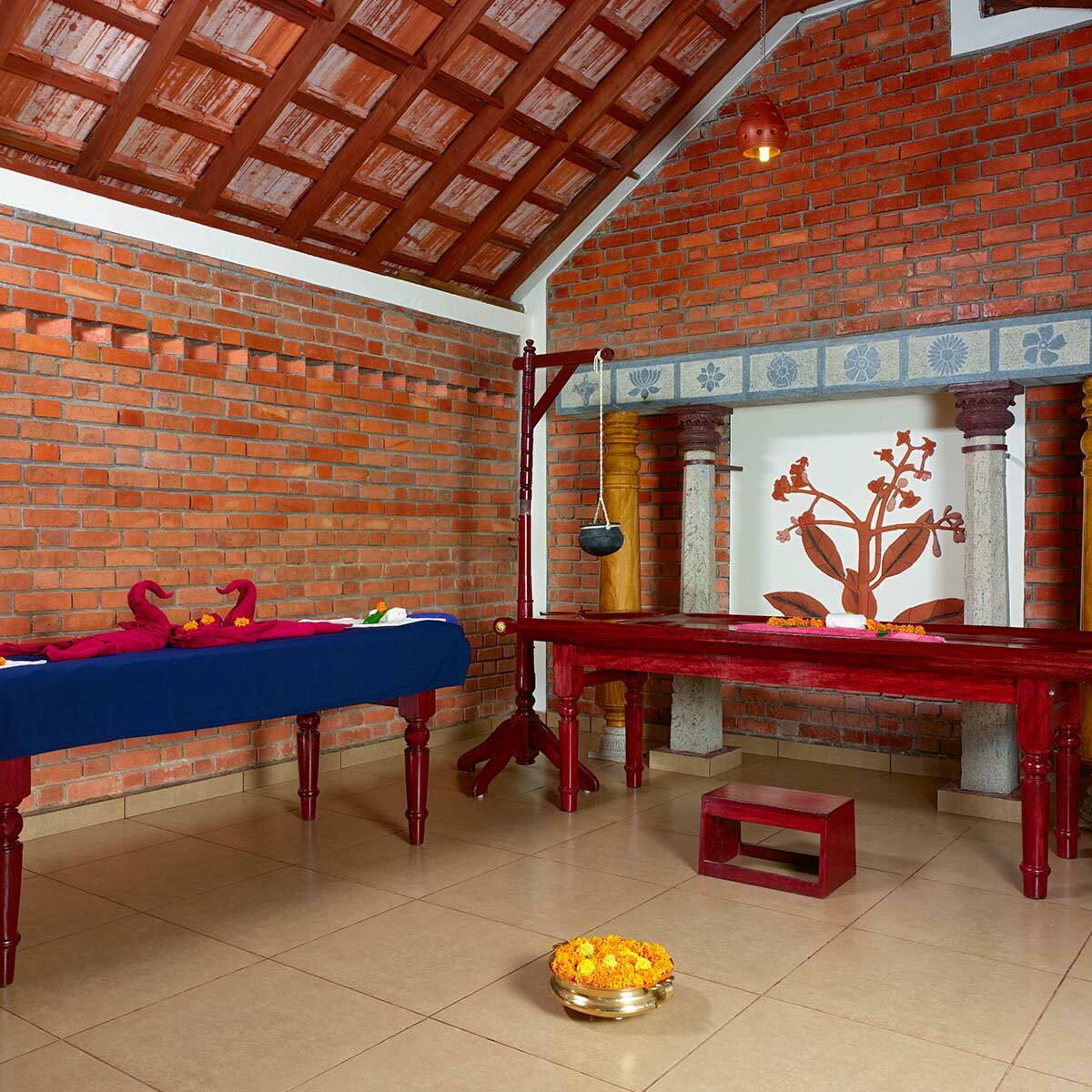 Центр Аюрведы построен в традиционном стиле с обилием естественного света воздуха. Всего в отеле семнадцать полностью оборудованных процедурных кабинетов, две комнаты паровой бани и четыре кабинета врача с двумя вестибюлями для гостей.